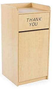 Top push door on restaurant trash cans feature Thank You message on one side. Tray area measures 19"W x 18-1/4"D x 2-1/4"H. Receptacle measures 20-1/2"W x 19"D x 44"H. Wood finishes are Gray or Medium Oak. Some assembly required. ... View Document