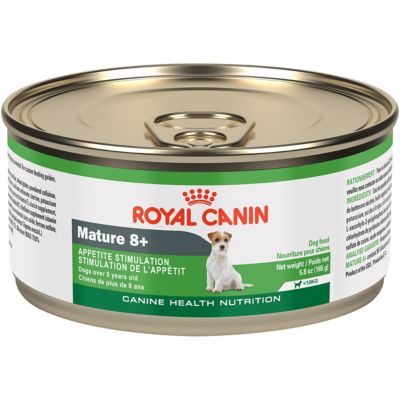 Royal Canin Mature 8+ Canned Dog Food is specially formulated for small breed dogs over 8 years. It's designed to stimulate their appetite, ensuring they get every drop of nutrition from the food dish. Royal Canin wet formulas are the perfect complement to Royal Canin X-Small and Mini dry formulas. ... View Full Source
