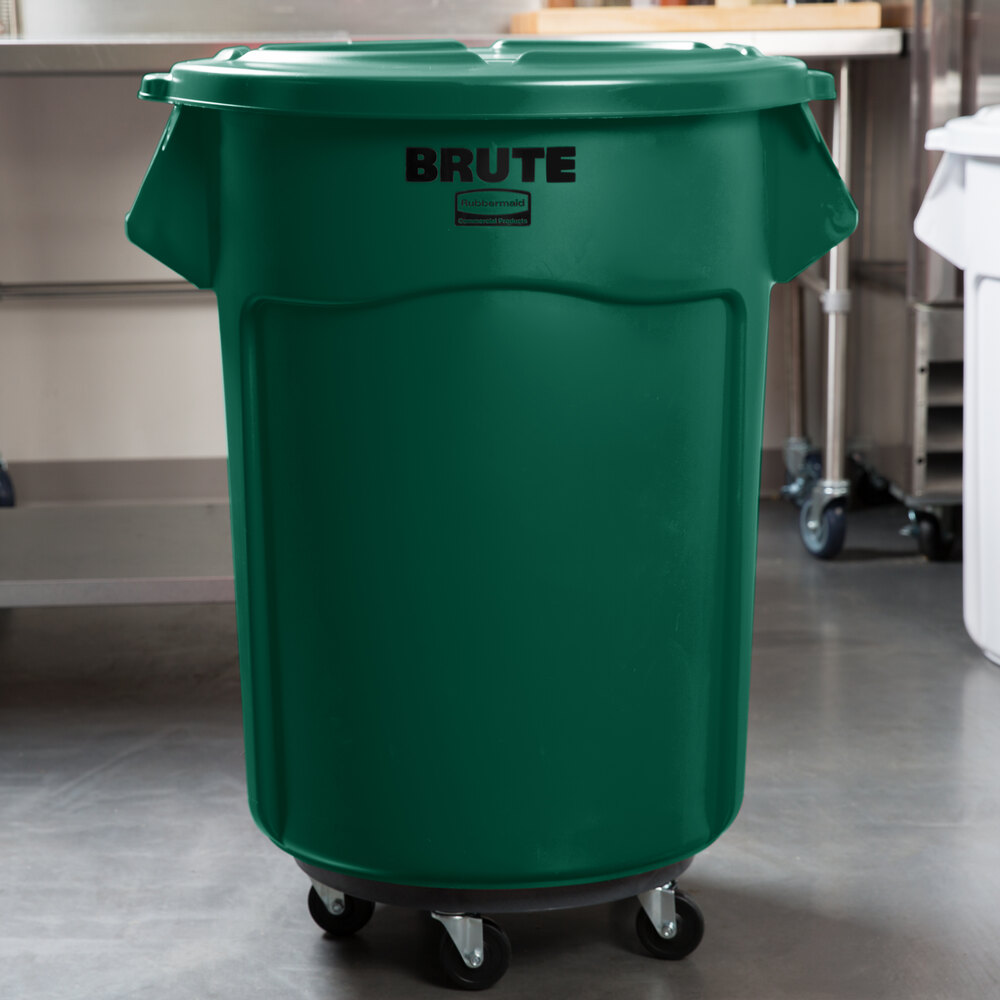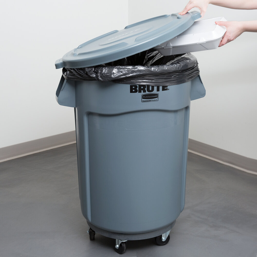 The Rubbermaid Commercial BRUTE® trash can or rollout container with lid offers easy mobility for general refuse collection and material handling. This trash can includes heavy-duty, 8" wheels for easy mobility, even over steps or curbing. The attached hinged lid fits tightly, swings back, and locks in place.  ... Content Retrieval